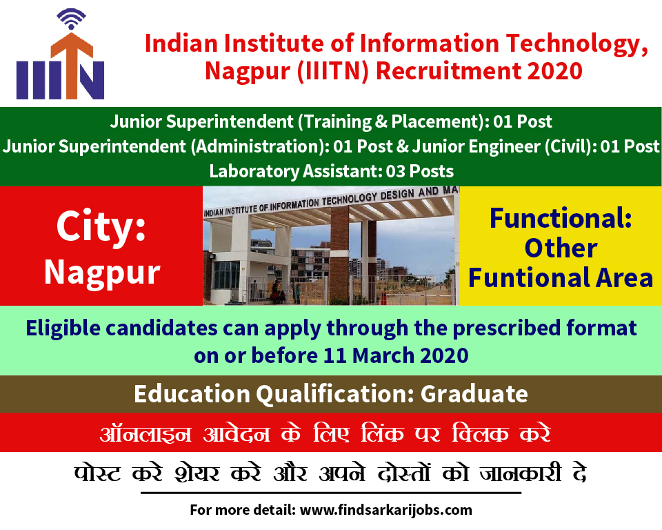 Indian Institute of Information Technology, Nagpur (IIITN) Recruitment 2020 for 06 Jr. Superintendent, Jr. Engineer & Lab Asst. Posts